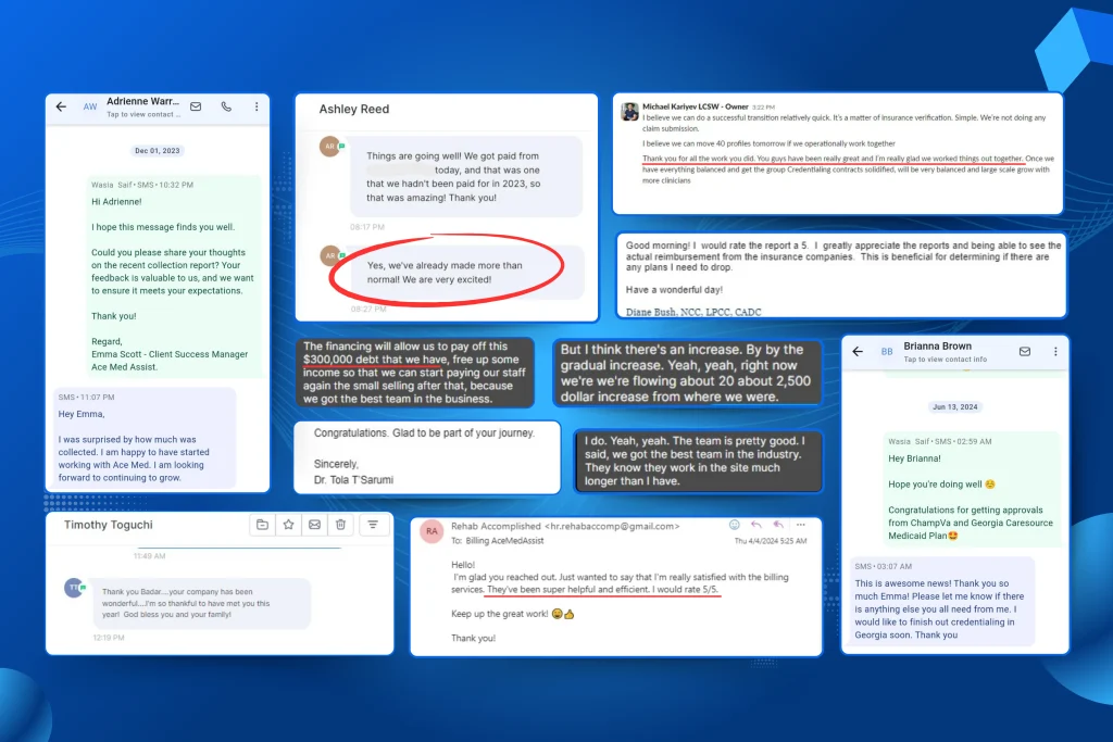 "I was overwhelmed with managing my practice and billing on my own, but Ace Med Assist changed everything. They've made the process seamless, and now I can focus on my clients without worrying about claims. It's been a huge relief! I highly recommend their services to anyone looking to grow their practice."